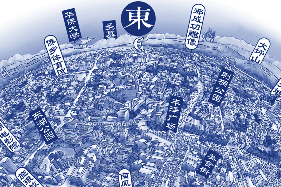 东边:郑成功雕像、侨乡体育馆、东湖、丰泽广城以及远在天边的华大~