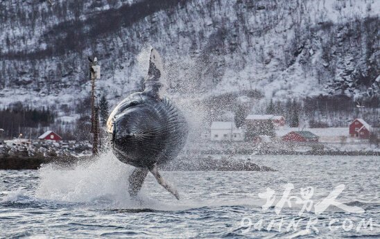 挪威特罗姆瑟,49岁的挪威生物学家Karl-Otto Jacobsen拍摄到一头40吨的座头鲸表演空中杂技的照片。这头座头鲸的重量足足抵得上一辆大卡车,它轻巧的跃出海面,表演了一个精彩的空中翻滚动作,然后回到水中,奖励自己一顿美味的鲱鱼大餐。这令人瞠目结舌的一幕虽然只延续了小一会儿,但是被Jacobsen捕捉了下来。
