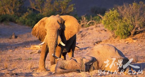 一头非洲象守在死去的同伴身边。大象具有很好的记忆力,它们不仅能记住地标和迁徙路线,而且具有惊人的社交记忆。20世纪90年代,科学家在肯尼亚安博塞利国家公园通过录音重放实验,对大象之间交流的方式进行了研究。