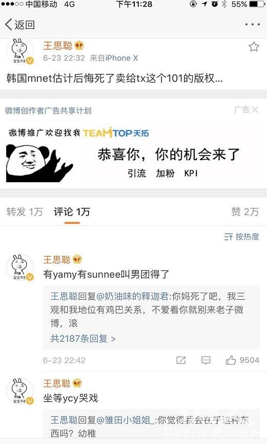 不了喷乱伦怎么多位选手却引来了粉丝的吐槽,大家应该都知道王思聪的香蕉娱乐公司中有一位叫强东玥的选手也进入了22强但是没能出道会是这个原因引来了王思聪对《创造101》这个节目的不满吗?