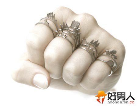 一只手戴了很多带刺的戒指有些极端,其实只戴一个不仅美观而且同样可以起到防身的作用。这些戒指设计的款式很多,有建筑物、动物、植物,单个看起来很有艺术性。设计师是荷兰的Zelda。