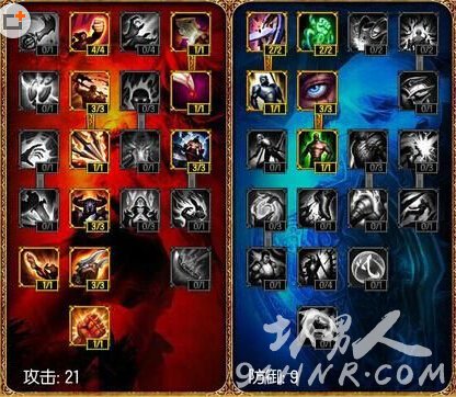 通常的AP类天赋,同样以21攻击为主,9通用为辅,点出巫术,思想之力,奥数精通,高阶法师,毁灭攻势,末日浩劫等以增加线上输出能力,点出冥想,烹饪大师等以增加线上回复能力。点出召唤师的洞悉以减少召唤师技能冷却等,。