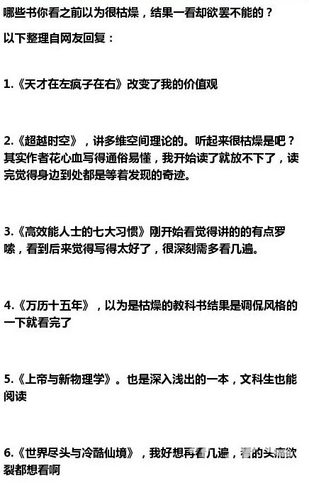 哪些书你看之前以为很枯燥,结果一看却欲罢不能的?小伙伴们赶紧马走吧