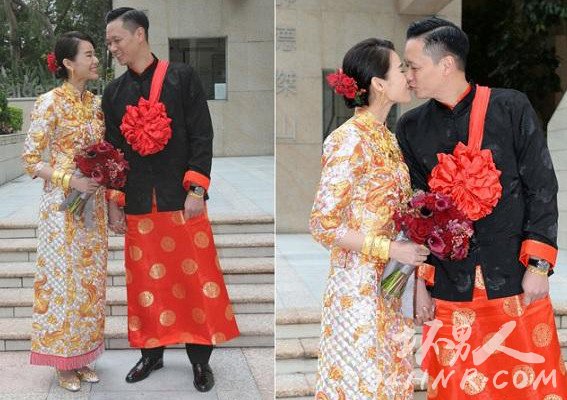 杏儿除了手上佩戴龙凤金镯之外,颈上佩戴一只金猪寓意开枝散叶,由此可见她可能随时准备好要Baby。大合照时,一向害羞的Philip应记者要求同杏儿甜蜜接吻。