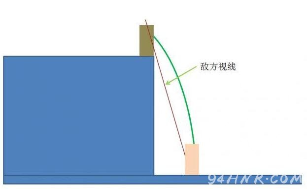 而且高打低还有一个弊病:射击过近的低位必须完全暴露在低位敌人的视野中,这也让高打低失去了意义。详见下图