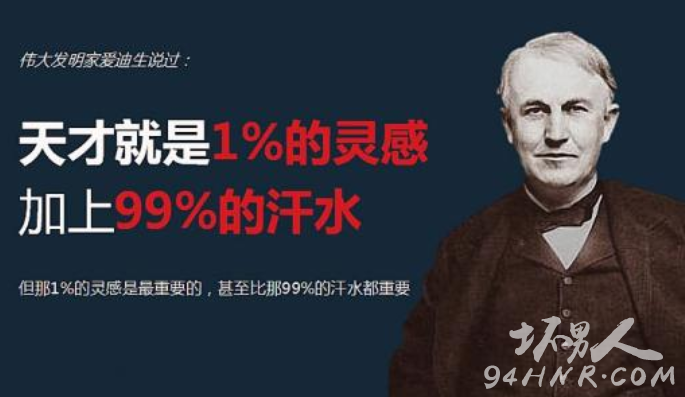 从小到大,老师都会用爱迪生的这句话教导我们好好学习,天天向上。现在才知道,虽然伟大的发明家爱迪生确实说过“天才那就是1%的灵感加上99%的汗水”这句话,但是,我们的老师和教材偏偏每次都漏掉爱迪生后面那关键的一句话:“但那1%的灵感是最重要的,甚至比那99%的汗水都要重要”。