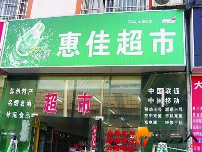 苏州汽车南站对面一家名为“惠佳”的超市在各家门店中格外惹眼,琳琅满目的货品摆放整齐,店员也中规中矩地坐在店门口收银,但门口一张警方贴出的“谨防上当”的友情告示牌却是该超市的独家“特色”。