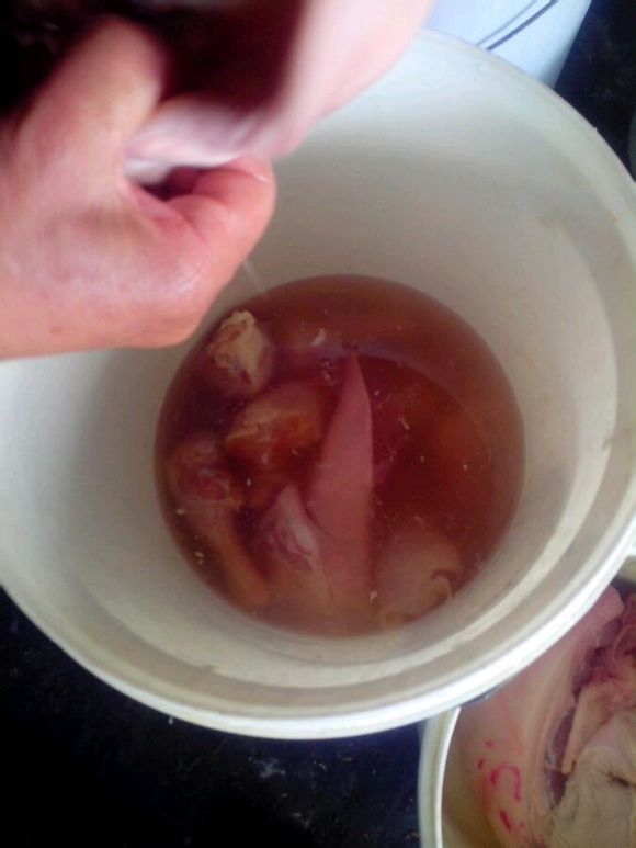 3、 楼主准备了两个猪耳朵,两个猪肚,五斤猪肉,三斤鸡爪,五斤鸡腿,三斤豆腐丝,四斤海带。