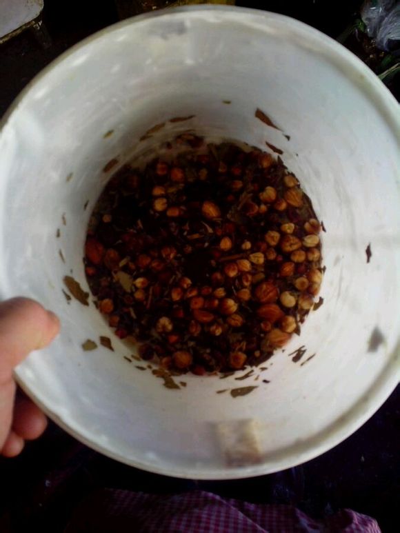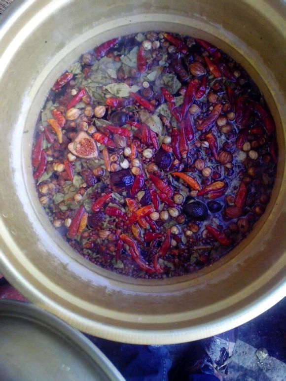 先说一下配方,香叶25片,八角20个,桂皮15厘米,白芷15片,草果5个,白蔻20个,肉蔻3个,良姜拇指大一小块,丁香5个,小茴香一小把[10克左右吧]……此配方适合做25斤左右的卤水。大葱两根,老姜一大块拿刀拍一下放入卤汤中!