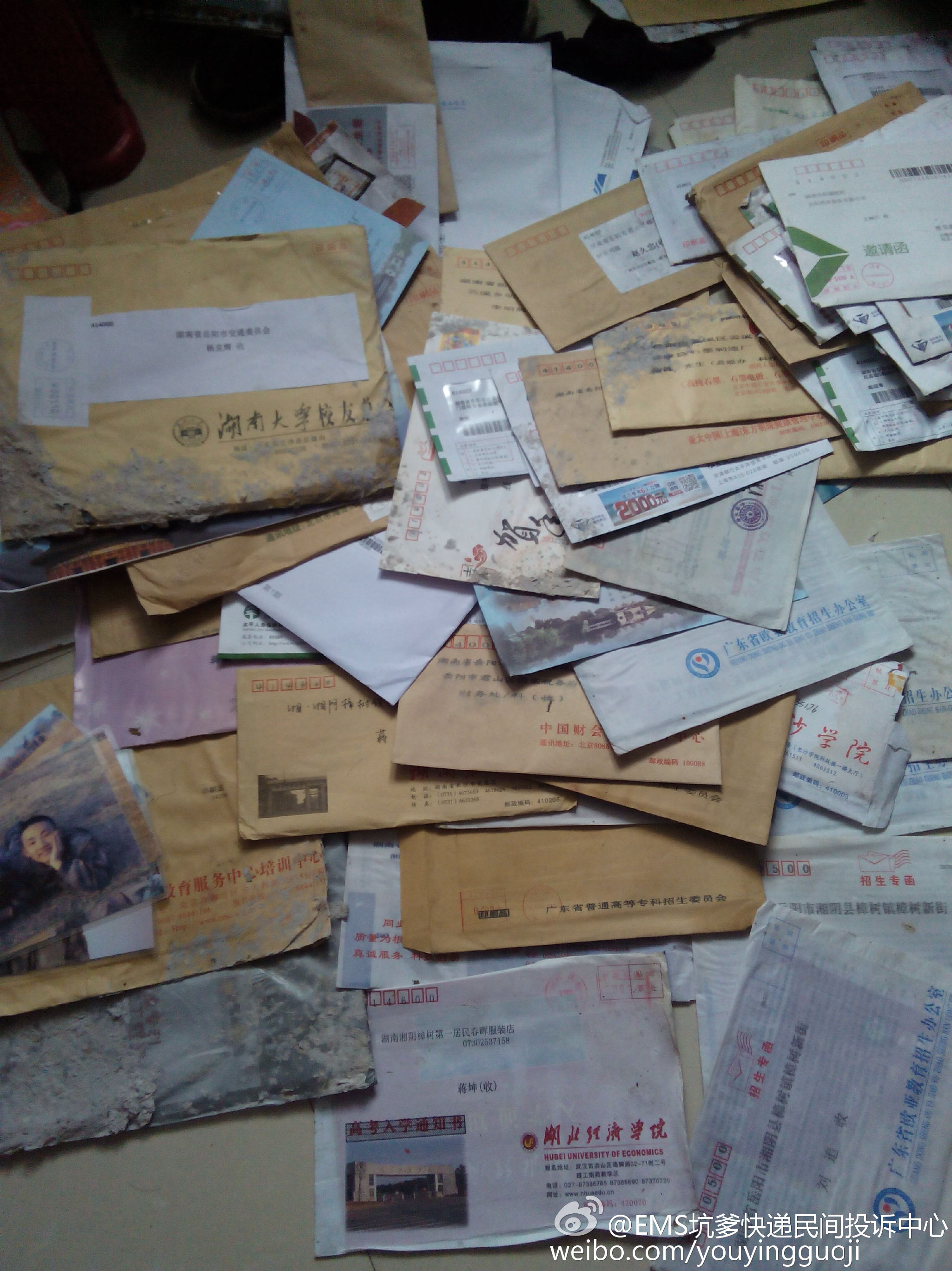 这位网友的父亲应他的要求,从纸厂回收的废纸堆里面拿了一些信件回来,拍成照片,发给了我、