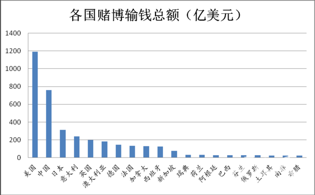 赌博输钱总额前20强,中国高居第2位(数据来源:H2)